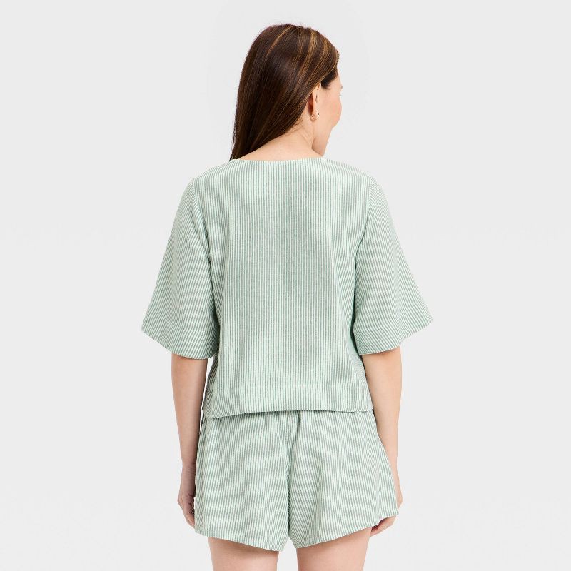 Women's Bell Elbow Sleeve Keyhole Peasant Top - Universal Thread™ Green Striped XL