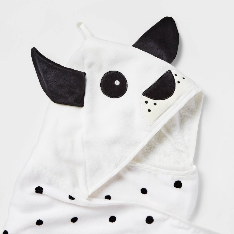 - Allover black dots and detailed dog face with ear accents at the hood for fun flair