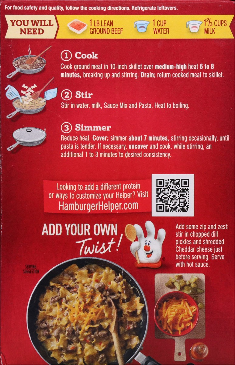 America's favorite Hamburger Helper is made with 100% REAL cheese for the real taste you love most. Our products are made with NO artificial flavors or colors from artificial sourcesAdd Your Own Twist…