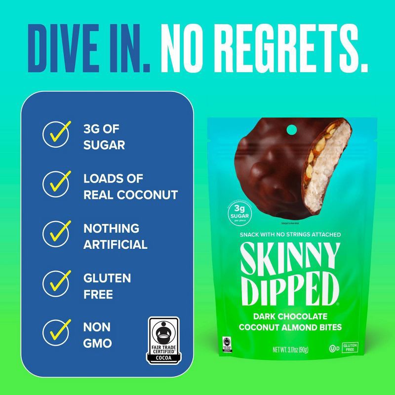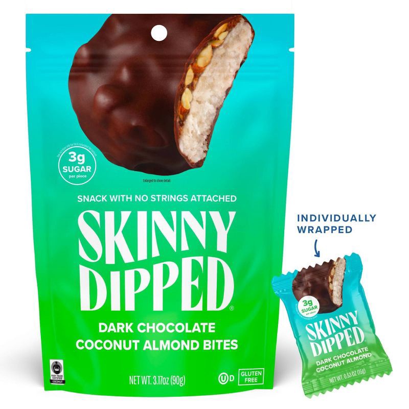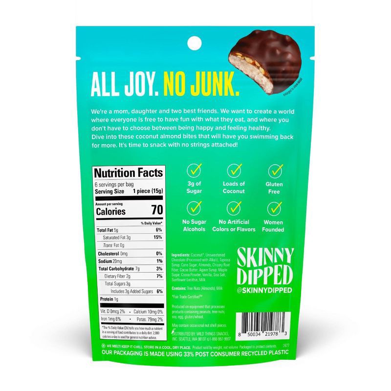 - PORTION-CONTROLLED SNACKING: Each 3.17oz Bag of SkinnyDipped Coconut Almond Bites contains (6) individually wrapped Coconut Bites.