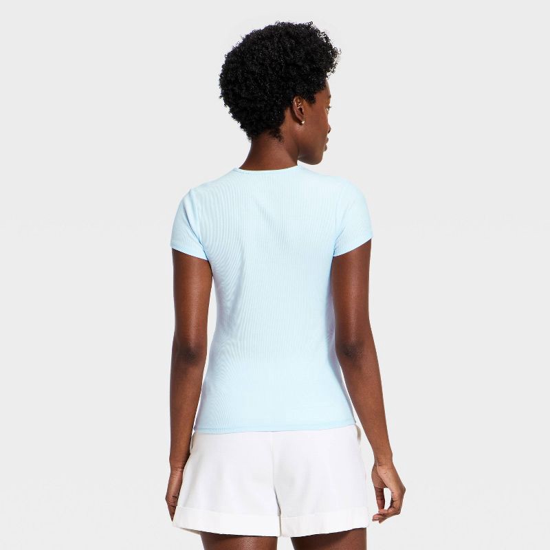 Women's Ribbed T-Shirt - A New Day™ Light Blue L