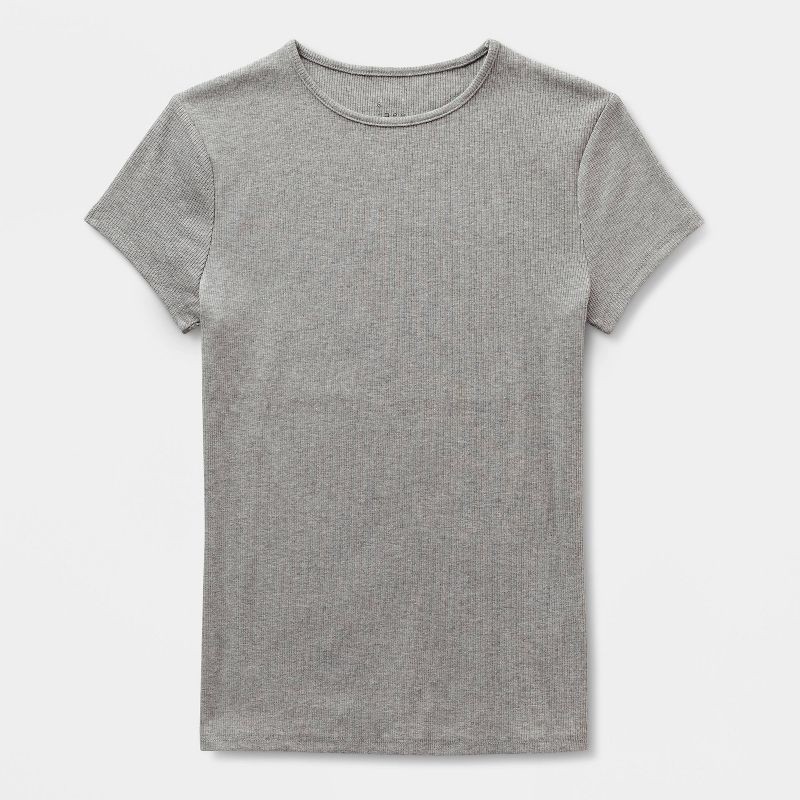 Women's Ribbed T-Shirt - A New Day™ Gray L