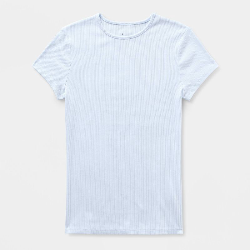 Women's Ribbed T-Shirt - A New Day™ Light Blue S