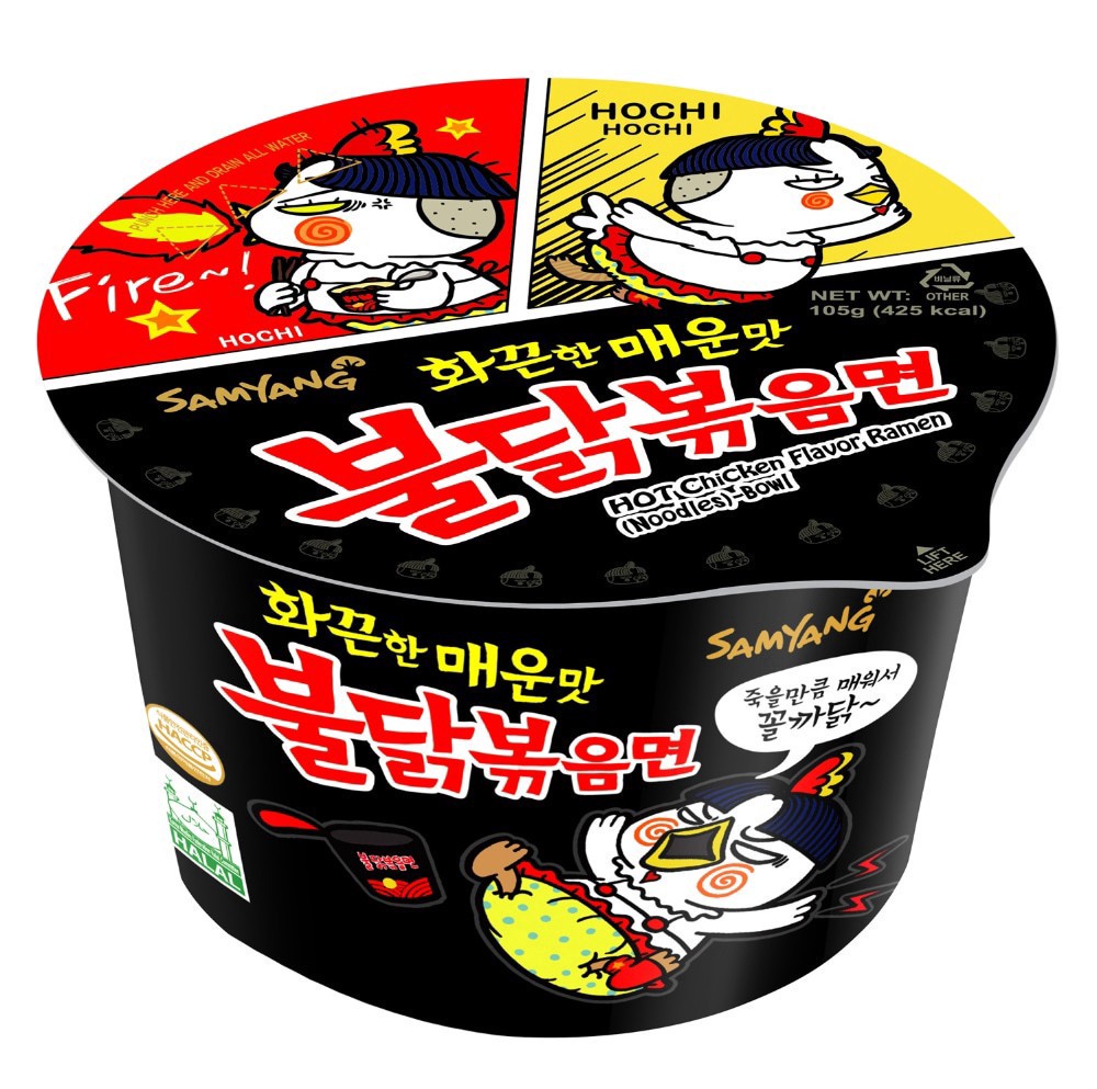 Samyang™ Hot Chicken RamenDeliciously spicy noodle with sesame seeds and grilled seaweed flakes (KMF Halal certified)Perfect for those with bigger appetites for lunch or dinner