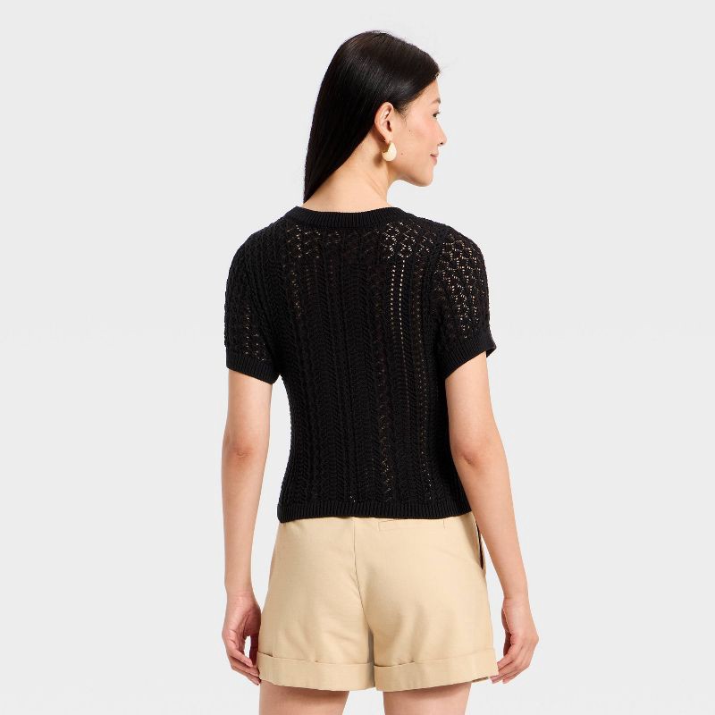 Women's Short Sleeve Crochet Sweater Top - A New Day™ Black L