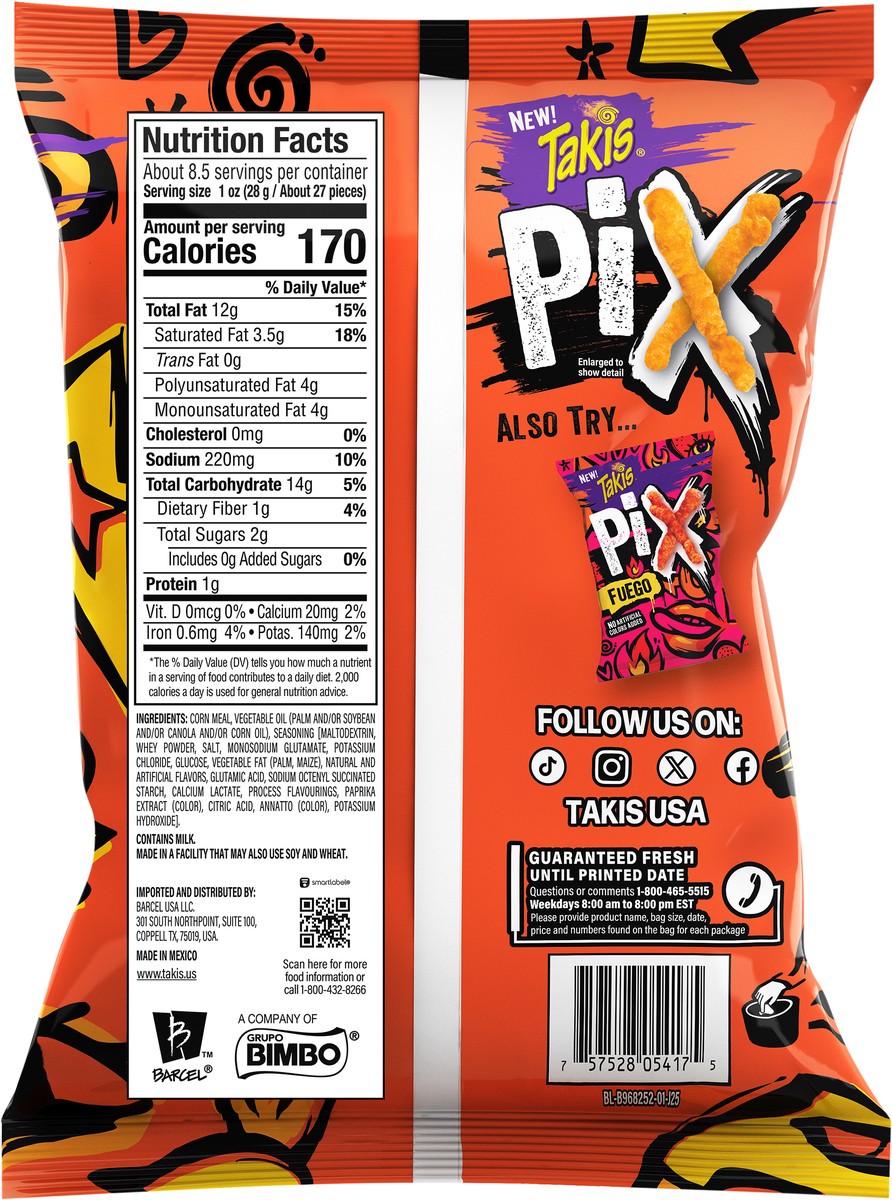 Corn Meal, Vegetable Oil (Palm and/or Soybean and/or Canola and/or Corn Oil), Seasoning [Maltodextrin, Whey Powder, Salt, Monosodium Glutamate, Potassium Chloride, Glucose, Vegetable Fat (Palm, Maize)…