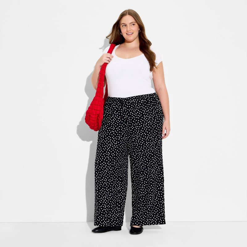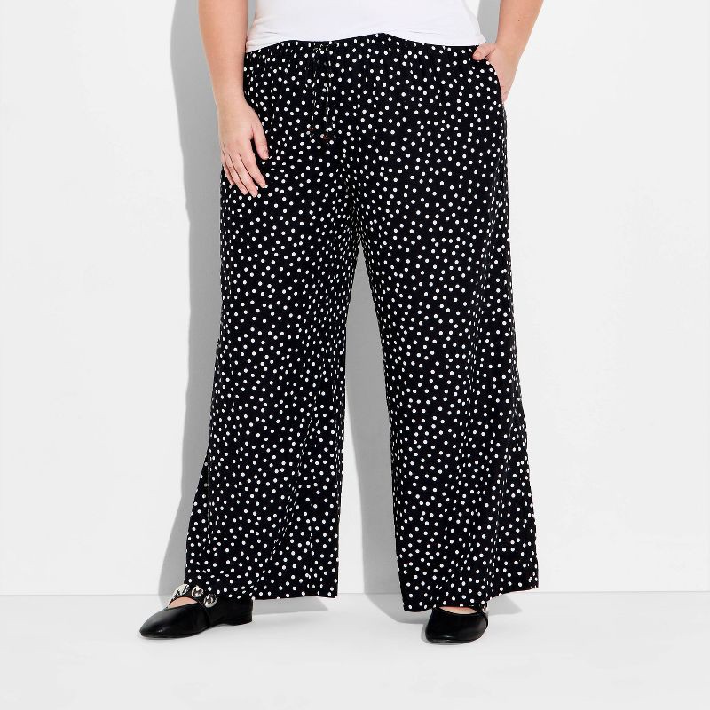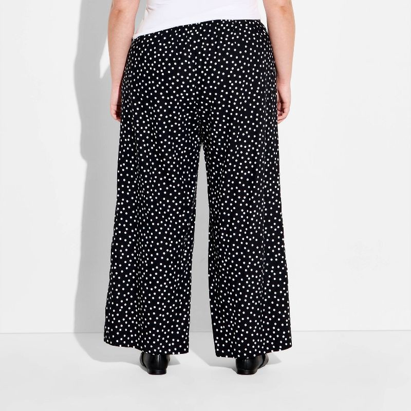 Women's Low-Rise Baggy Leg Linen Pull-On Pants - Wild Fable™ Black Polka Dots XXL