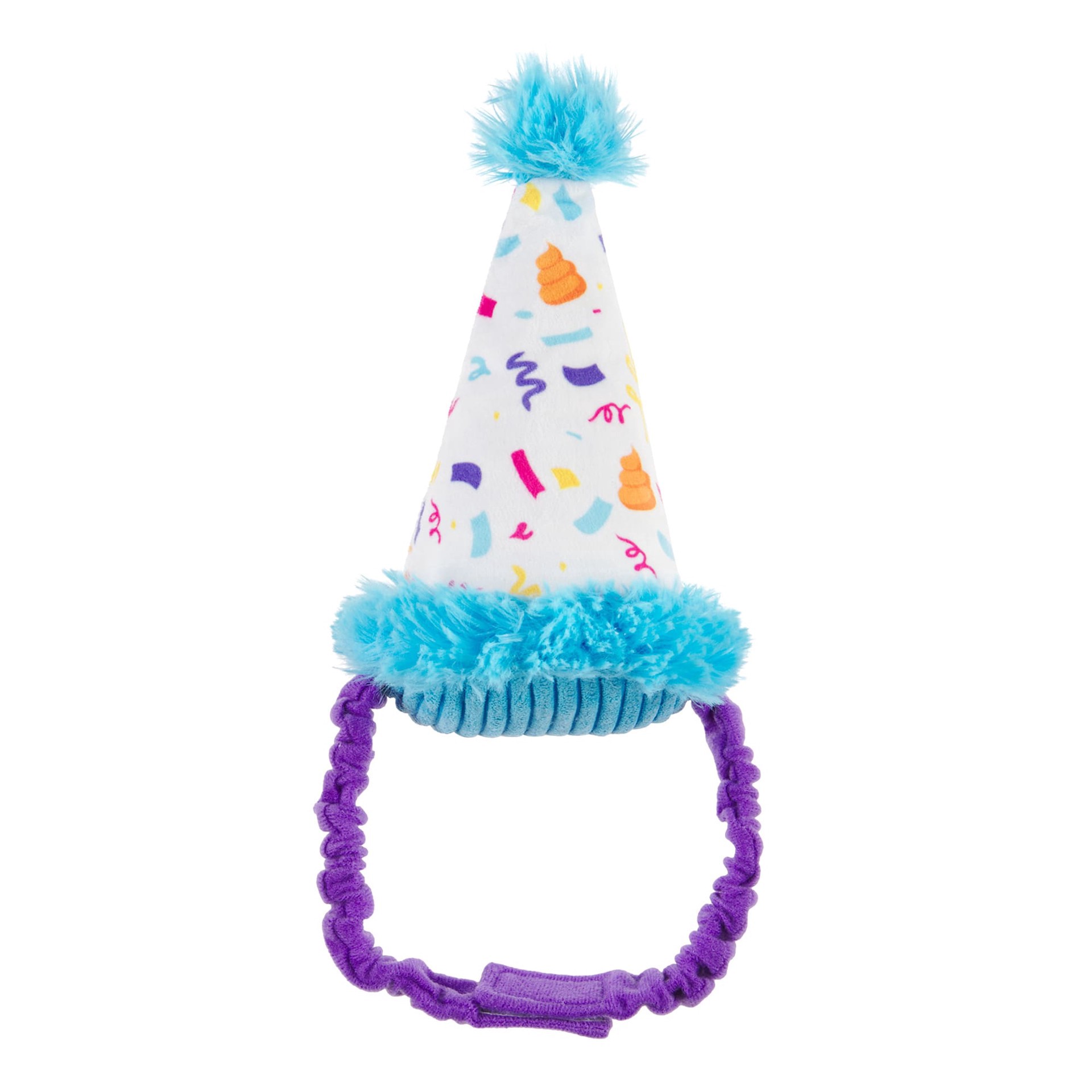 This birthday hat dog toy is for a party animal! Party Pooper Hat is a wearble toy made with extra fluff, super stretch bungee and a squeaker-it's your dog's party, they can squeak if they want to! Th…