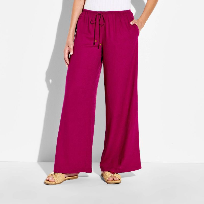 Women's Low-Rise Baggy Leg Linen Pull-On Pants - Wild Fable™ Berry Red XS
