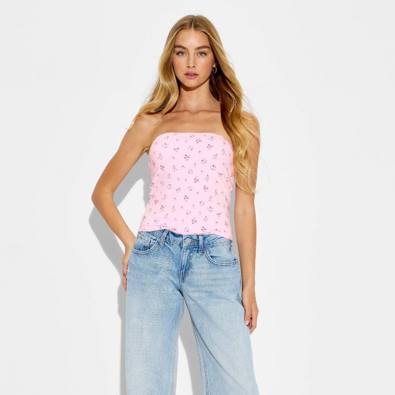Women's ButterBliss Reversible Tube Top - Wild Fable™ Light Pink Strawberries S