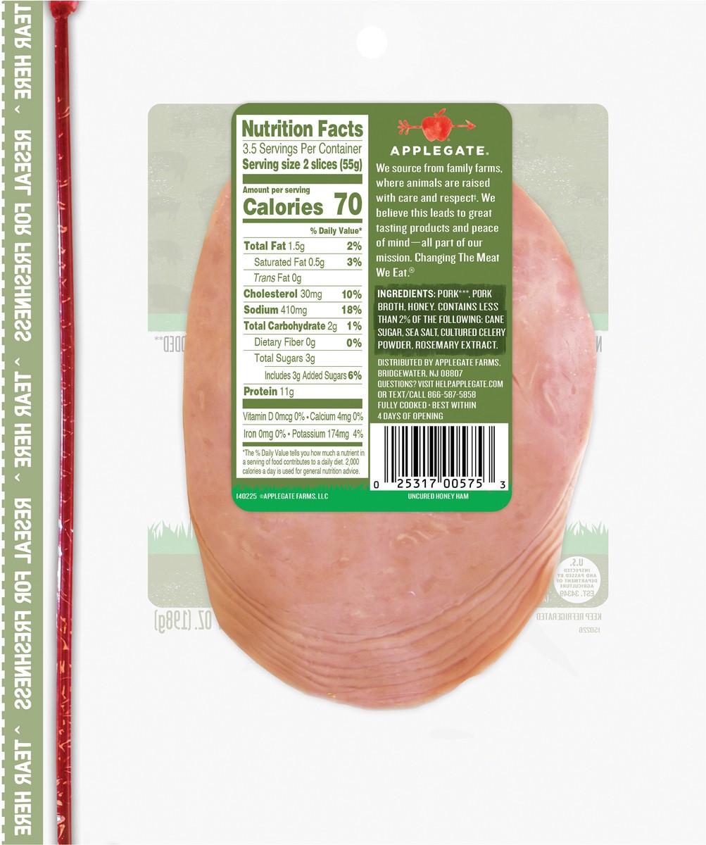 Applegate Natural Uncured Honey Ham adds a touch of honey to your normal deli sliced ham routine. It's fully cooked honey ham, ready to eat right away. It's the perfect lunch meat or cold cut, the san…