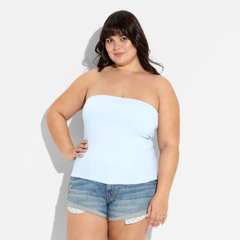 Women's ButterBliss Reversible Tube Top - Wild Fable™ Light Blue Striped XXL