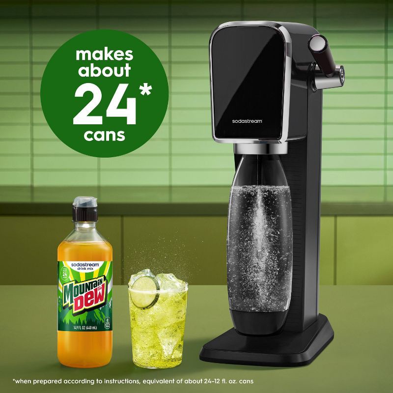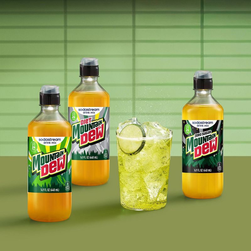 - Includes: (1) 440ml SodaStream® Mountain Dew® Drink Mix bottles