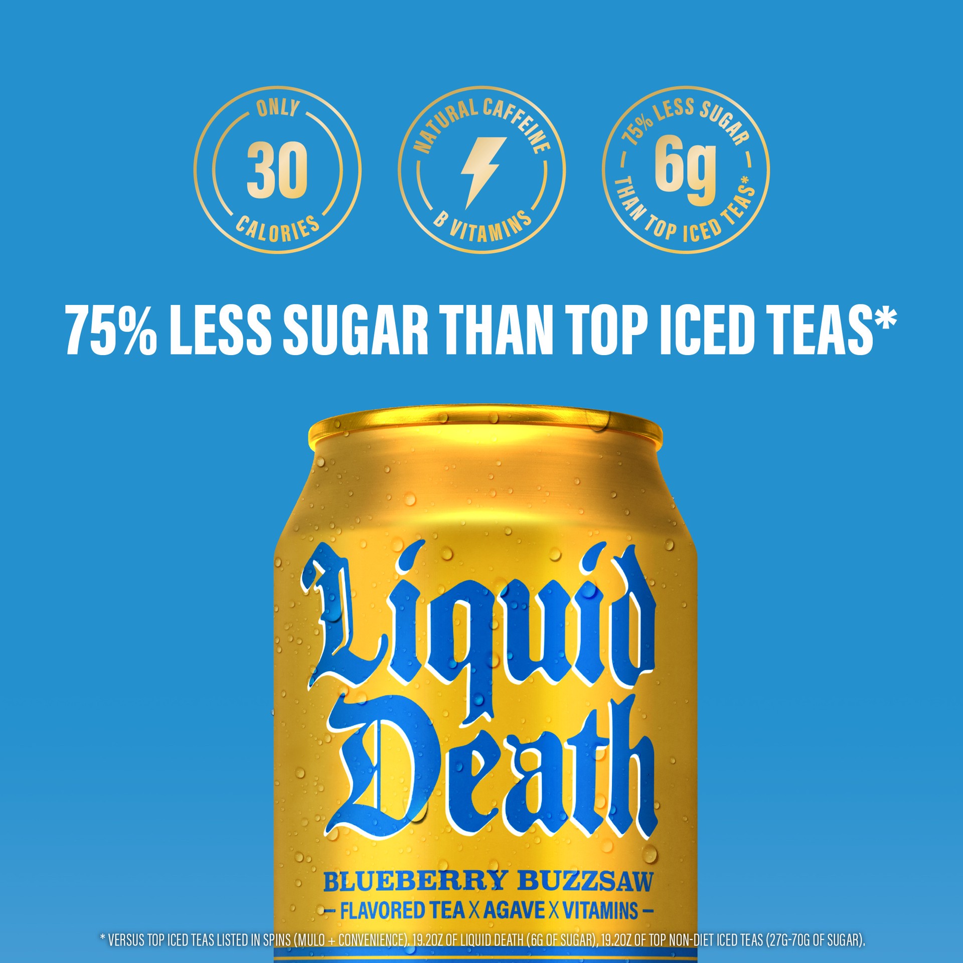 Flavored tea x agave x vitamins. Only 30 calories. Microdose of Natural Caffeine: 30 mg per can. Natural caffeine B vitamins. 75% less sugar 6 g than top iced teas*. * Versus top iced teas listed in s…