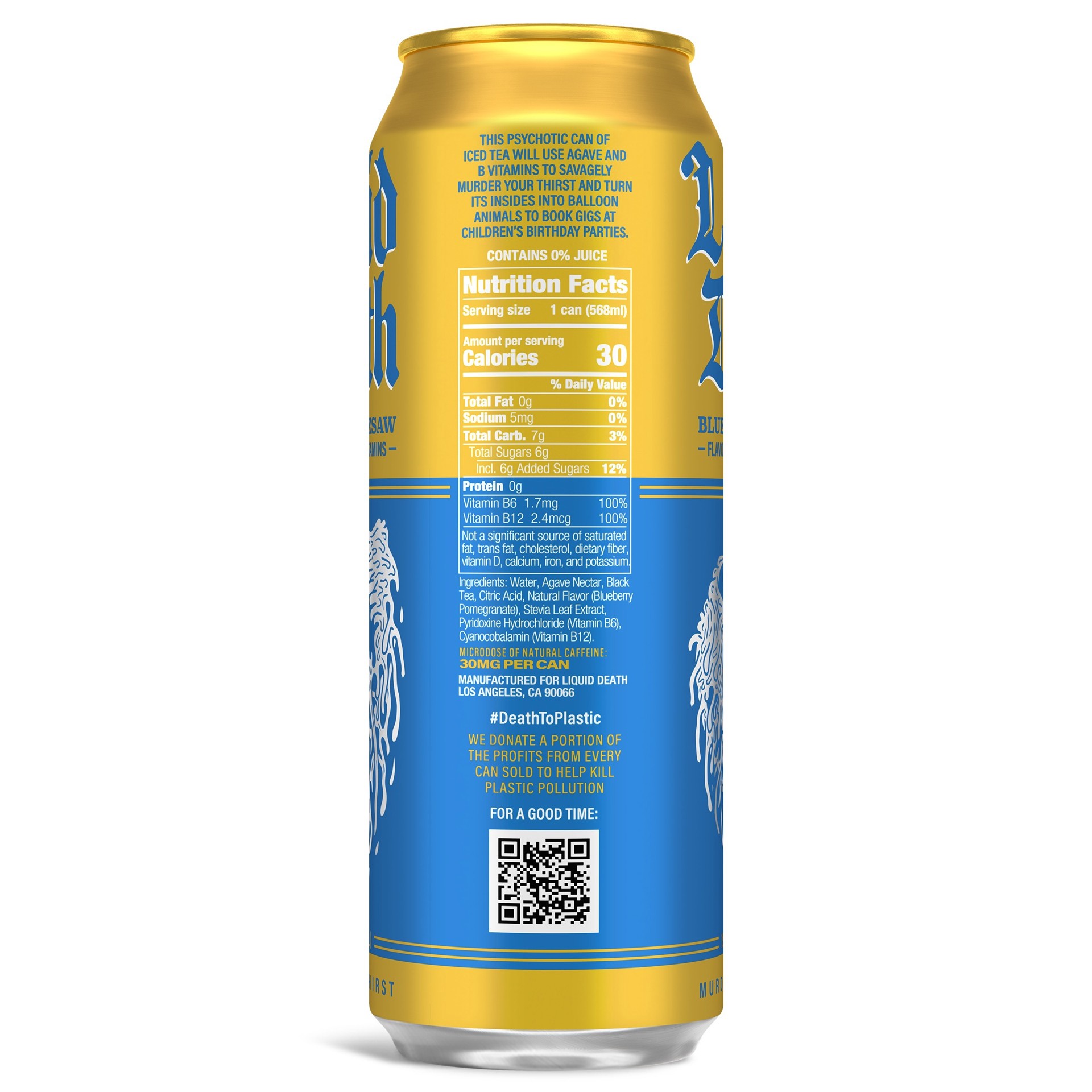 Liquid Death, Blueberry Buzzsaw Iced Tea, Blueberry Flavored Black Tea