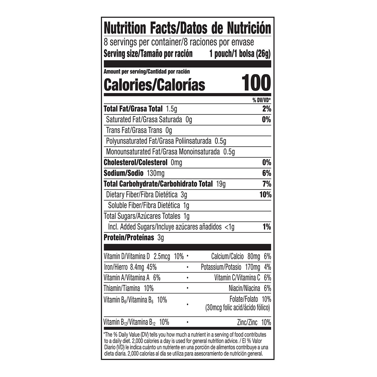 Whole Grain Oats, Corn Starch, Sugar, Salt, Tripotassium Phosphate, Vitamin E (Mixed Tocopherols) Added to Preserve Freshness. Vitamins and Minerals: Calcium Carbonate, Iron and Zinc (Mineral Nutrient…