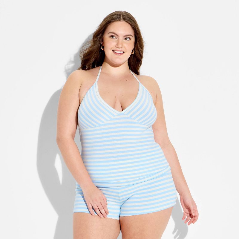 Women's Soft Cotton Halter Top - Wild Fable™ Light Blue Striped XXL
