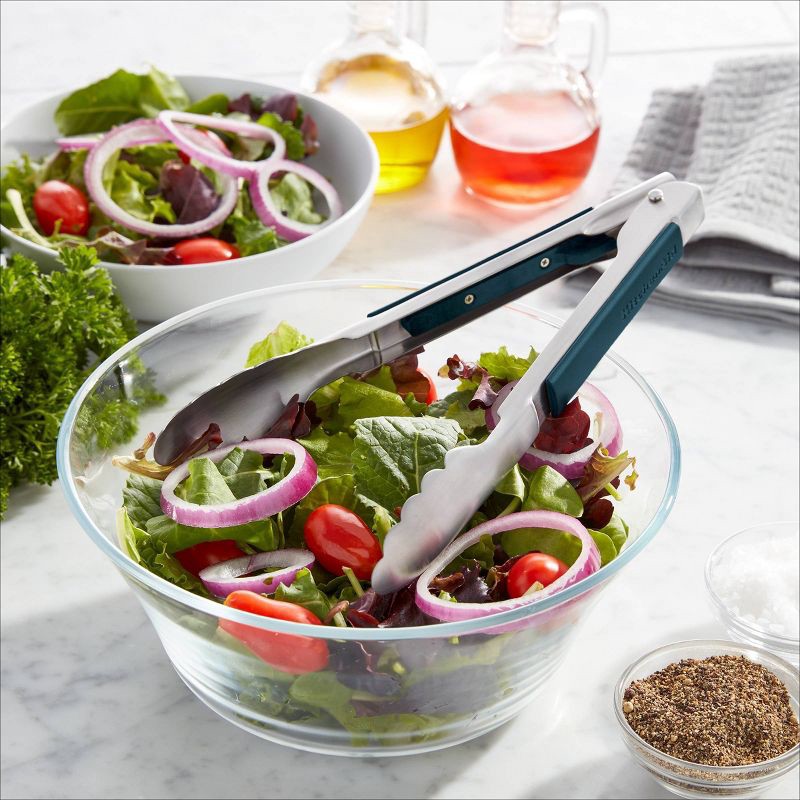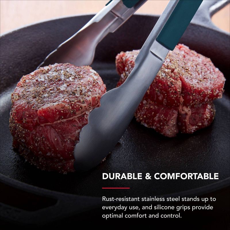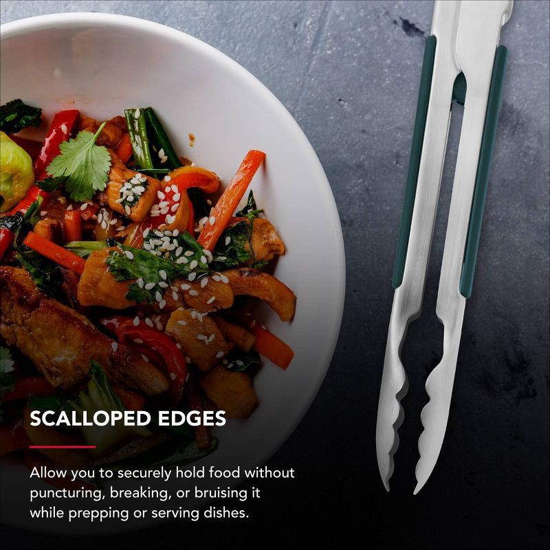 These versatile tongs are perfect for flipping or serving foods with ease. Scalloped edges grip firmly without damaging delicate items, while stainless steel and silicone grips offer lasting comfort a…