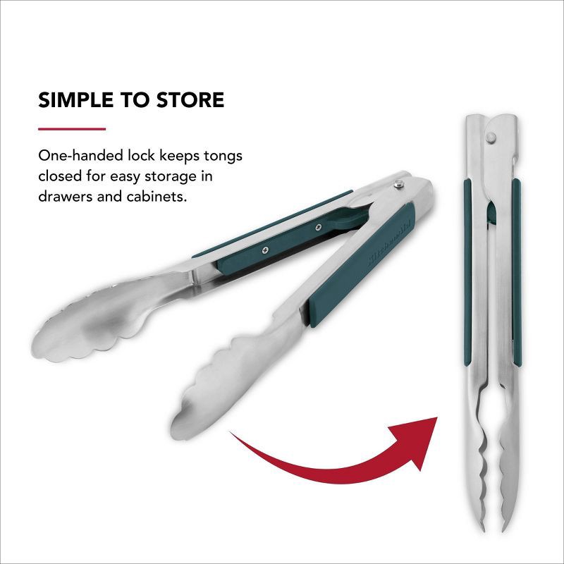 - SIMPLE STORAGE: one-handed lock keeps tongs closed for easy storage in drawers and cabinets