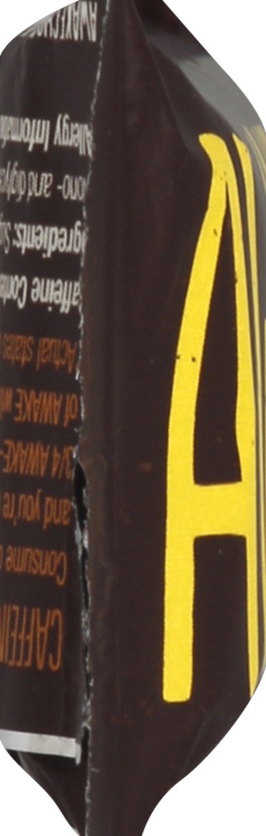 Caffeine equivalent: 1 bar = 1 cup o' Joe. Consume one piece of Awake and you'll be ready for wringing out a washcloth or possibly closing a very heavy box. Two pieces, and you're ready for conversati…