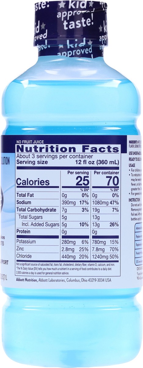 Pedialyte Electrolyte Solution Drinks are designed for fast, effective rehydration. Pedialyte Electrolyte Solution has 2x the electrolytes and ½ the sugar of the leading sports drink. It's also design…