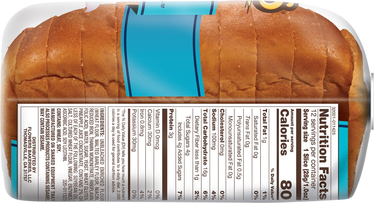 Unbleached Enriched Flour (Wheat Flour, Malted Barley Flour, Niacin, Reduced Iron, Thiamin Mononitrate, Riboflavin, Folic Acid), Water, Sugar, Yeast, Wheat Gluten, Pineapple Juice Concentrate, Contain…