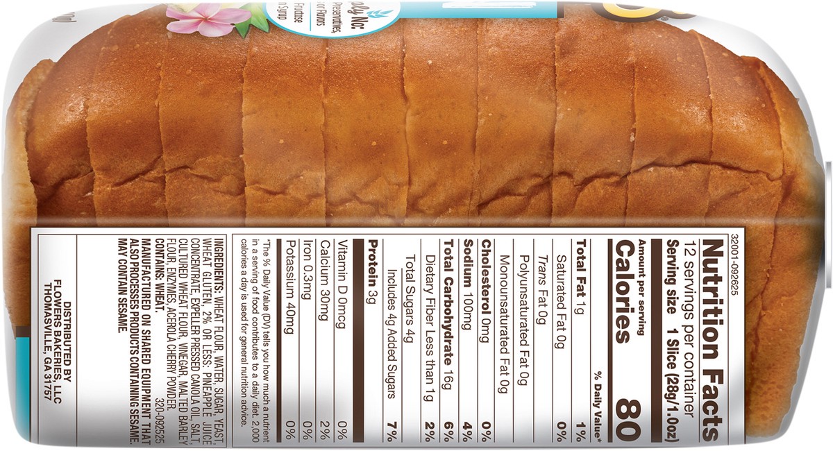 Unbleached Enriched Flour (Wheat Flour, Malted Barley Flour, Niacin, Reduced Iron, Thiamin Mononitrate, Riboflavin, Folic Acid), Water, Sugar, Yeast, Wheat Gluten, Pineapple Juice Concentrate, Contain…