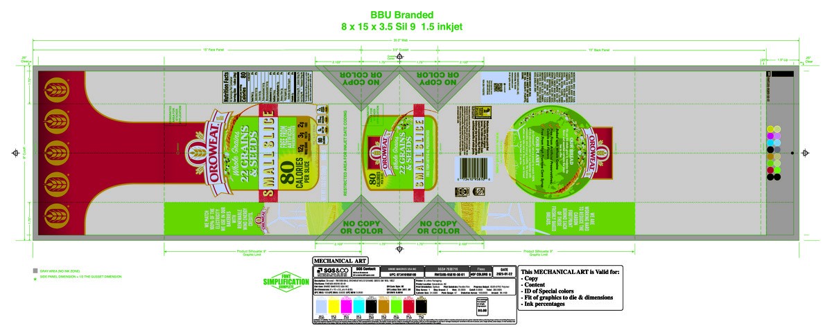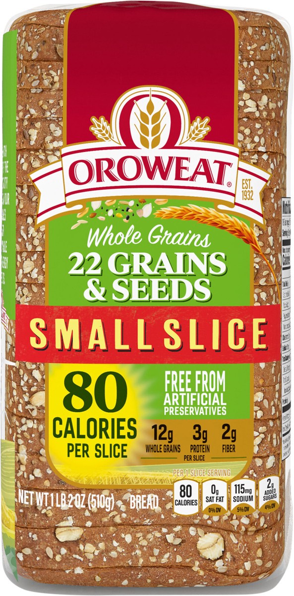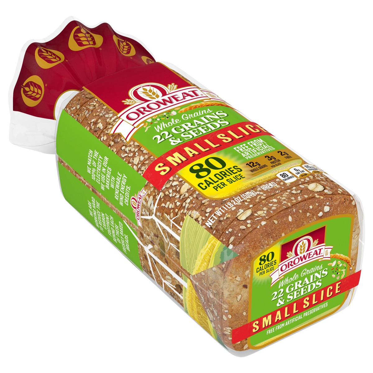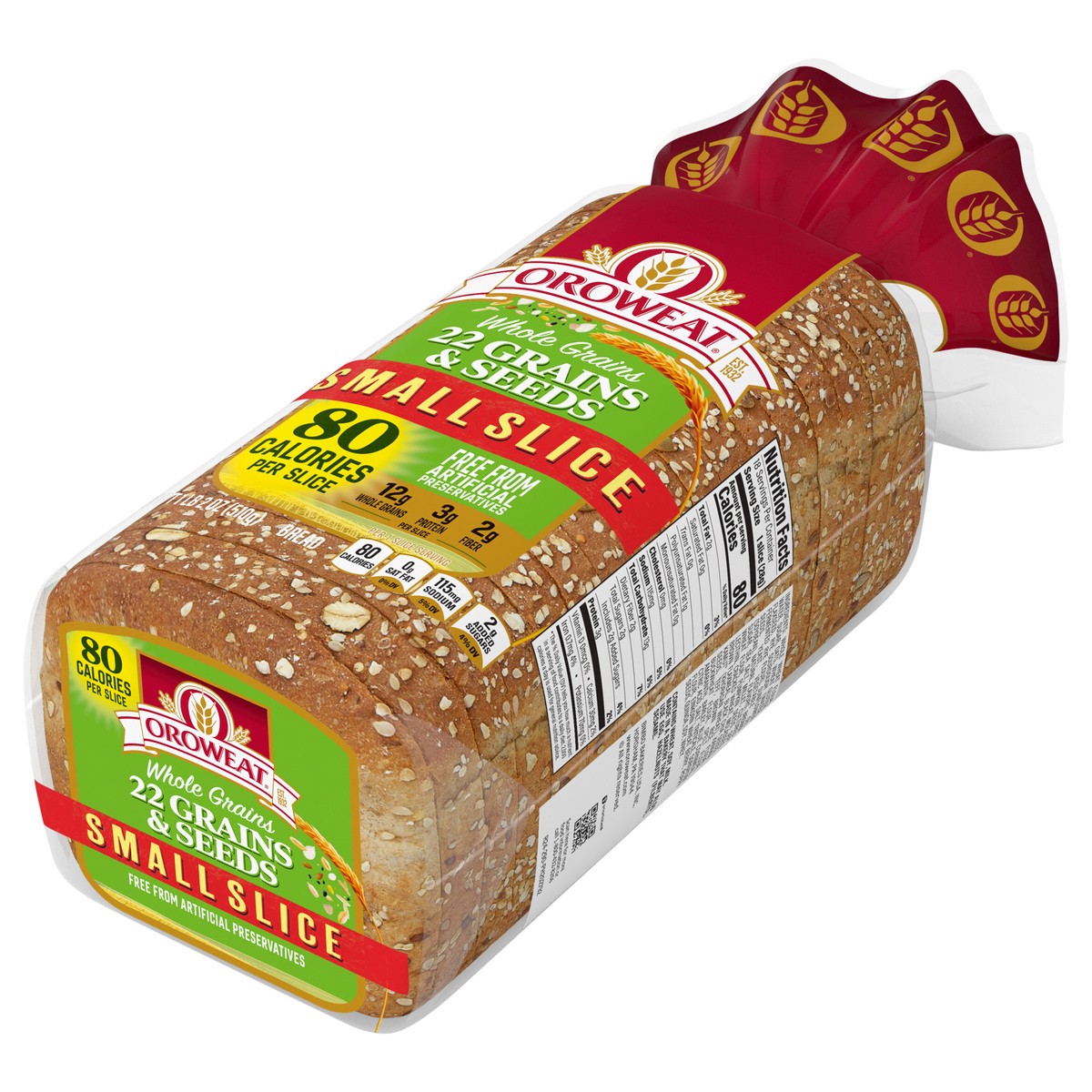 - One 18 oz loaf of Oroweat whole grains 22 grains and seeds small slice bread