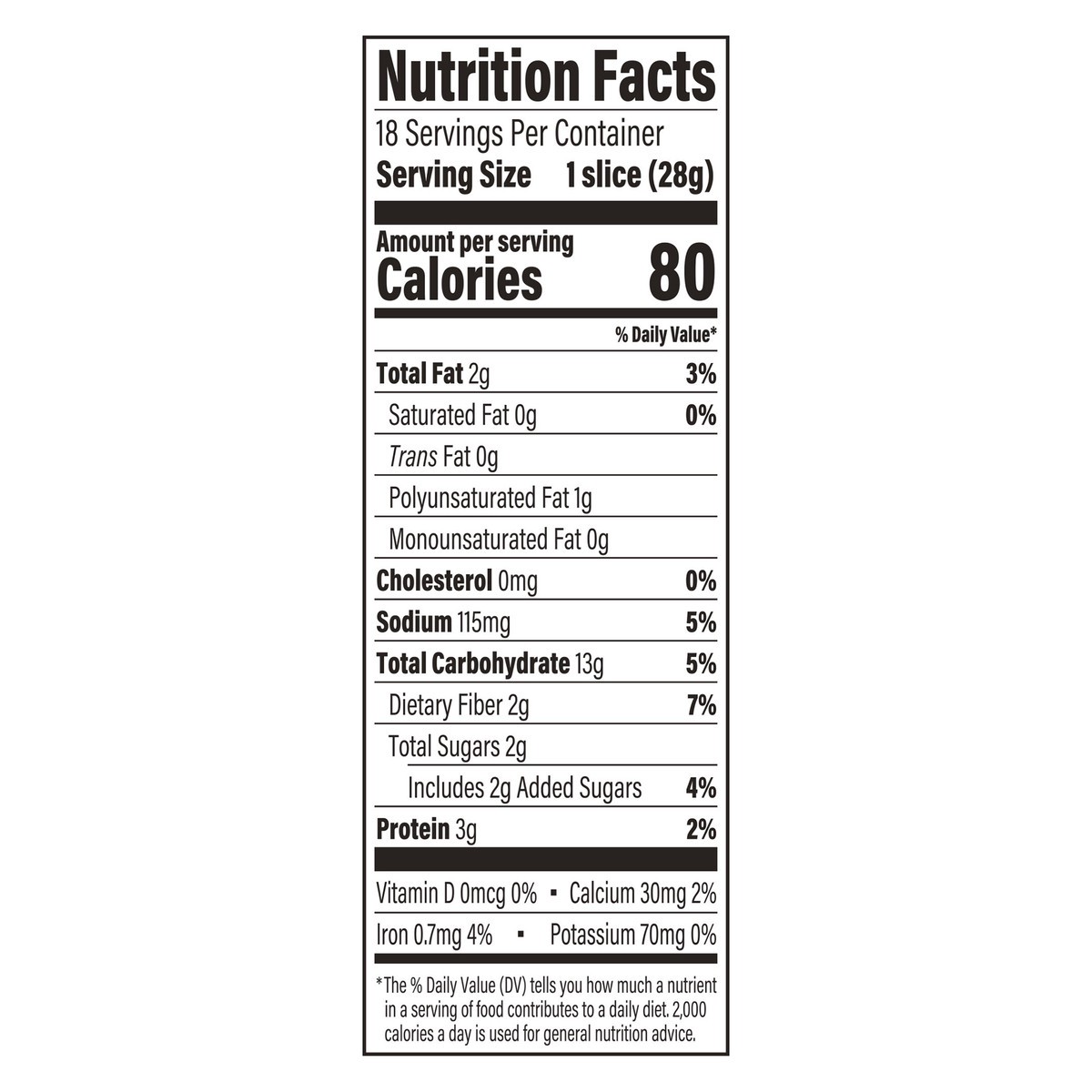 Whole Wheat Flour, Water, Sugar, Oats, Wheat Gluten, Flaxseed, Rye Sourdough (Water, Fermented Rye Flour), Sunflower Seeds, Yeast, Vegetable Oil (Soybean), Natural Flavors, Brown Sugar, Sea Salt, Mill…
