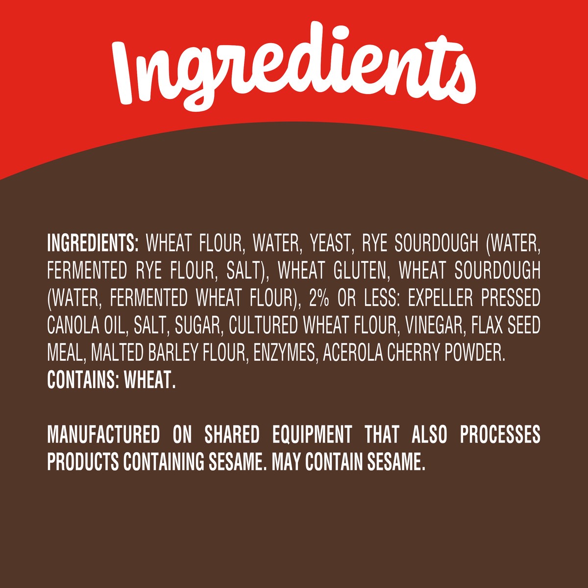 Unbleached Enriched Flour (Wheat Flour, Malted Barley Flour, Niacin, Reduced Iron, Thiamin Mononitrate, Riboflavin, Folic Acid), Water, Yeast, Wheat Gluten, Contains 2% or Less of Each of the Followin…
