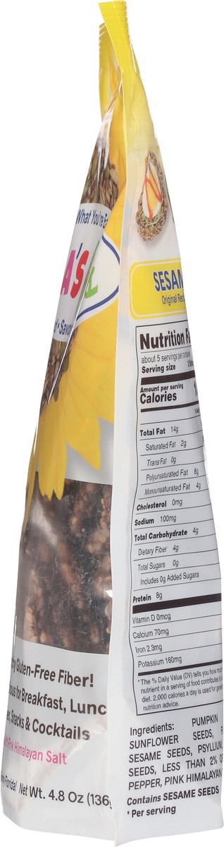 Pumpkin Seeds, Sunflower Seeds, Flaxseed, Sesame Seeds, Psyllium, Poppy Seeds, Less than 2% of: Black Pepper, Pink Himalayan Salt.