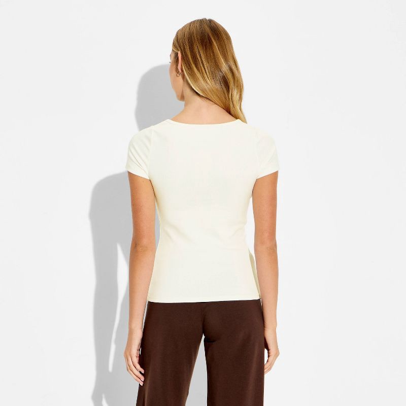Women's Short Sleeve Long and Lean Scoop Neck T-Shirt - Wild Fable™ Cream XL