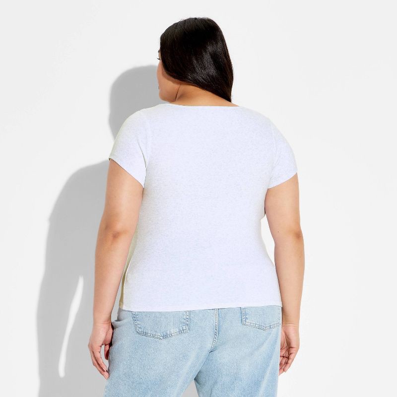 Long & lean T-shirt from Wild Fable™ in a solid shade. Designed with a scoop neckline and short sleeves. Crafted from midweight cotton 1 1 rib fabric with spandex for comfortable wear that moves and s…