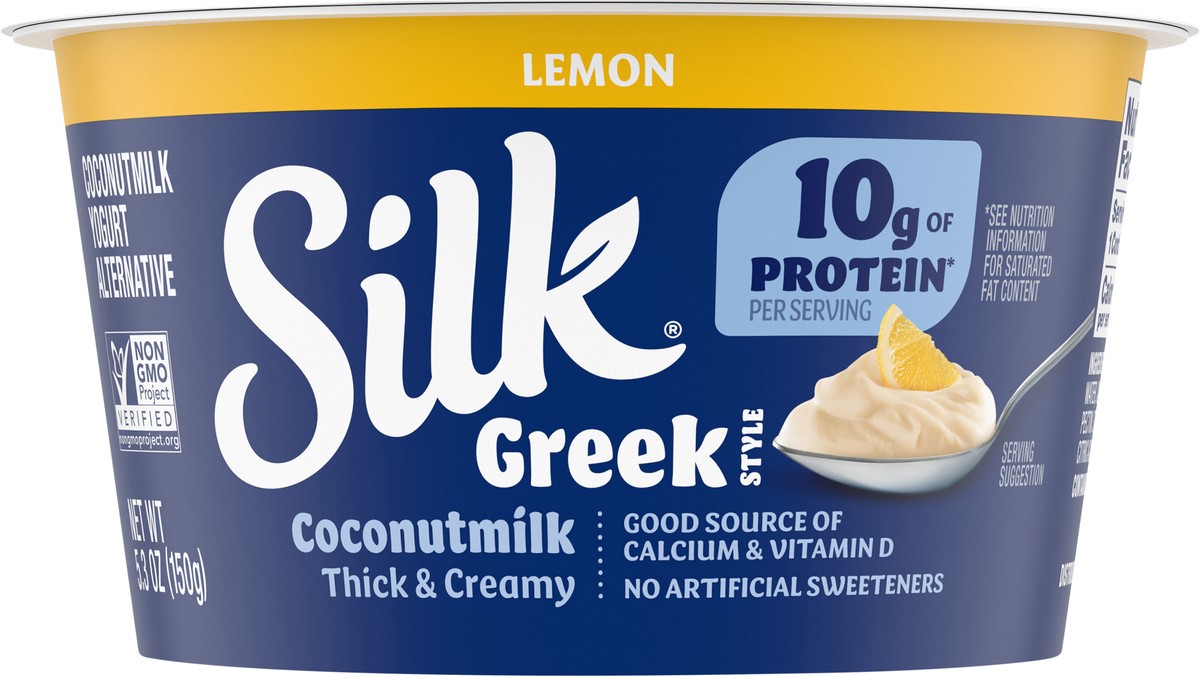 - EASY TO ENJOY: One 5.3 oz cup of Silk Lemon Greek Style Coconutmilk Yogurt Alternative is delicious on its own or enjoy with your favorite toppings like granola or fruit