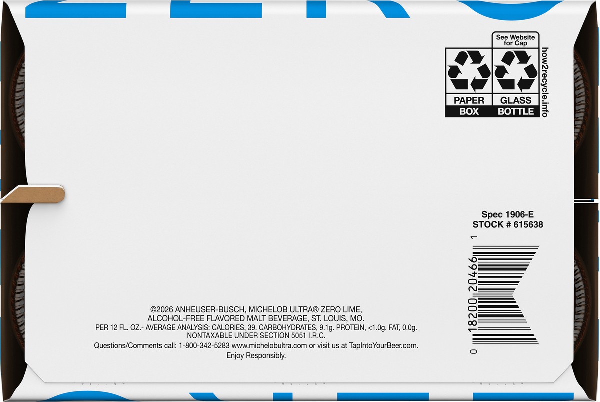 - 6 pack, 12 fl oz Bottles of Michelob ULTRA Zero Lime Alcohol Free Beer