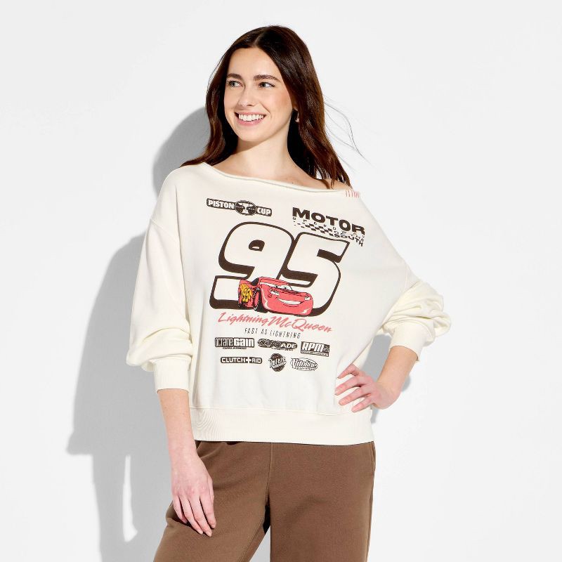 Cars Women's McQueen 95 Off The Shoulder Graphic Pullover Sweatshirt - Off-White XL