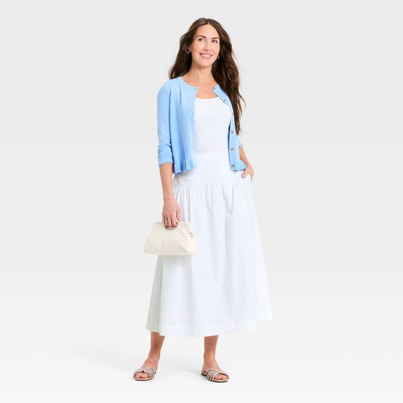 Women's Resort Poplin Drop Waist Midi Skirt - A New Day™ White L