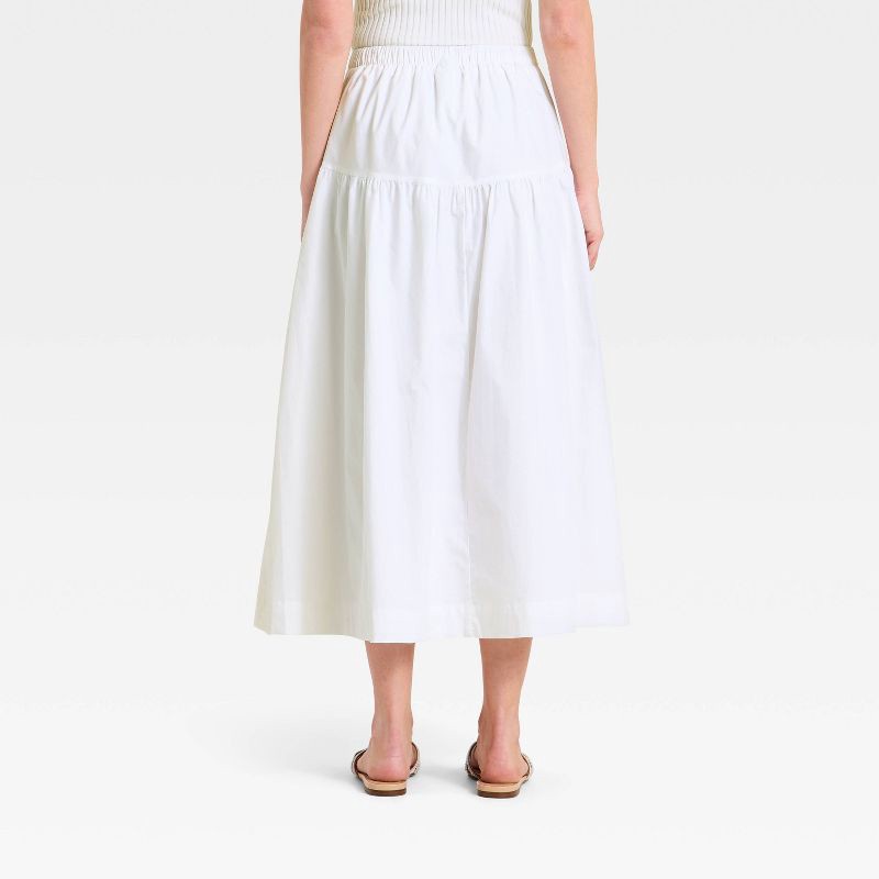 Women's Resort Poplin Drop Waist Midi Skirt - A New Day™ White M