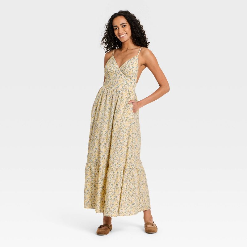 Women's Pullover Maxi A-Line Dress - Universal Thread™ Yellow Floral S