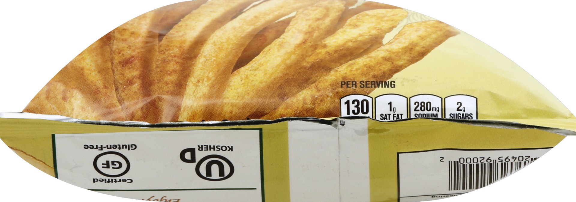 Delicious golden baked crunchy snacks. Per Serving: 130 calories; 1 g sat fat (5% DV); 280 mg sodium (11% DV); 2 g sugars. Certified gluten-free. Made with real Vidalia onions. Produced with genetic e…