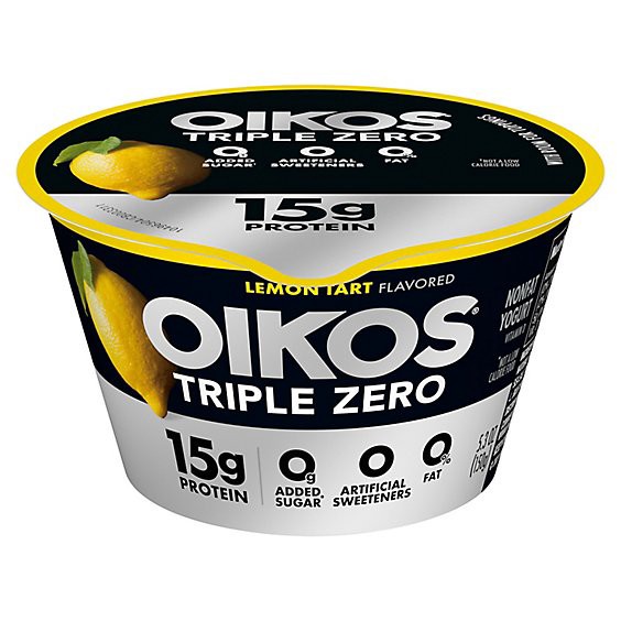 Enjoy epic tastes with Oikos Triple Zero Nonfat Lemon Tart Greek Yogurt, the delicious nonfat Greek yogurt cup with more of what you want and less of what you don''t. Each Oikos Triple Zero yogurt cup…