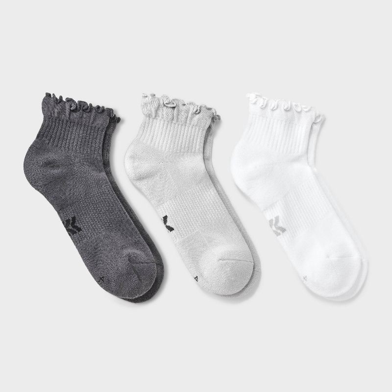 Step up your game with the Women's Cushioned Ruffle 3pk Athletic Ankle Socks from All In Motion™ 4-10. Designed for comfort and performance, these socks feature cushioned heels and toes for extra supp…