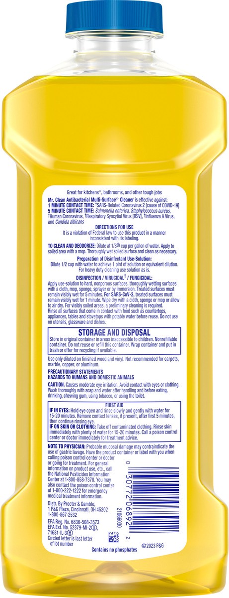 Mr. Clean Antibacterial All Purpose Cleaner, Floor Cleaner for Mopping, Cleaning Liquid, Lemon, 23oz