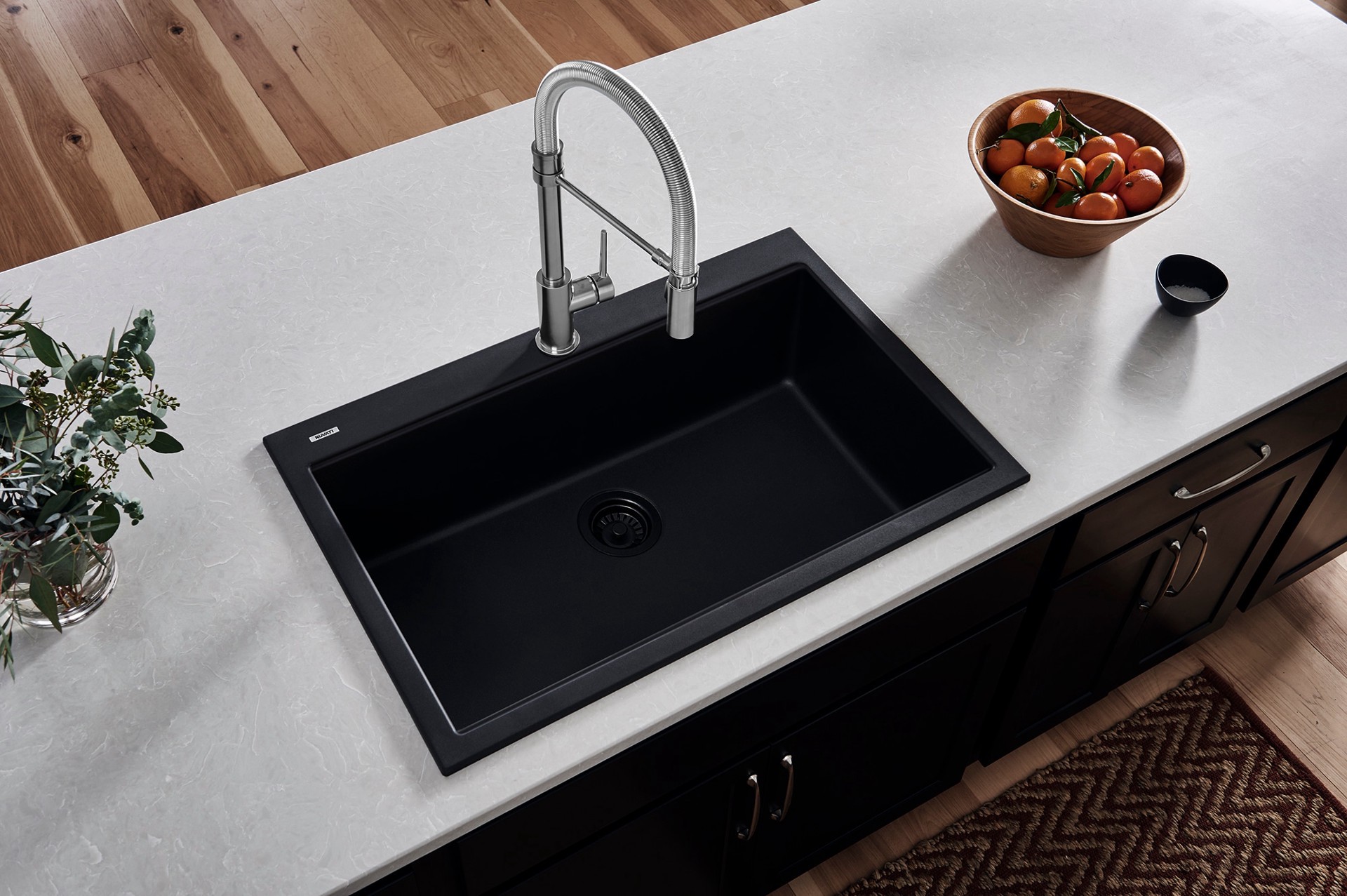 MADE IN ITALY: Each Ruvati granite sink is meticulously crafted by skilled Italian artisans | NATURAL STONE FINISH: Midnight Black (4 color options available), colored all the way through for a rich, …