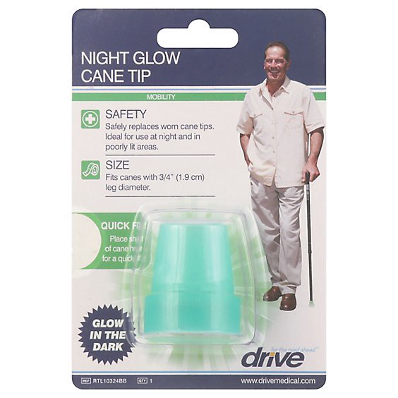 Mobility. Safety: Safely replaces worn cane tips. Size: Fits canes with 3/4 inch (1.9 cm) leg diameter. Quick fit! Place shaft of cane here for a quickfit! Glow in the dark. Drive - for the road ahead…