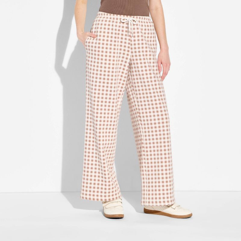 Grayson Threads Women's Wide Leg Graphic Pants - Brown Gingham XXS