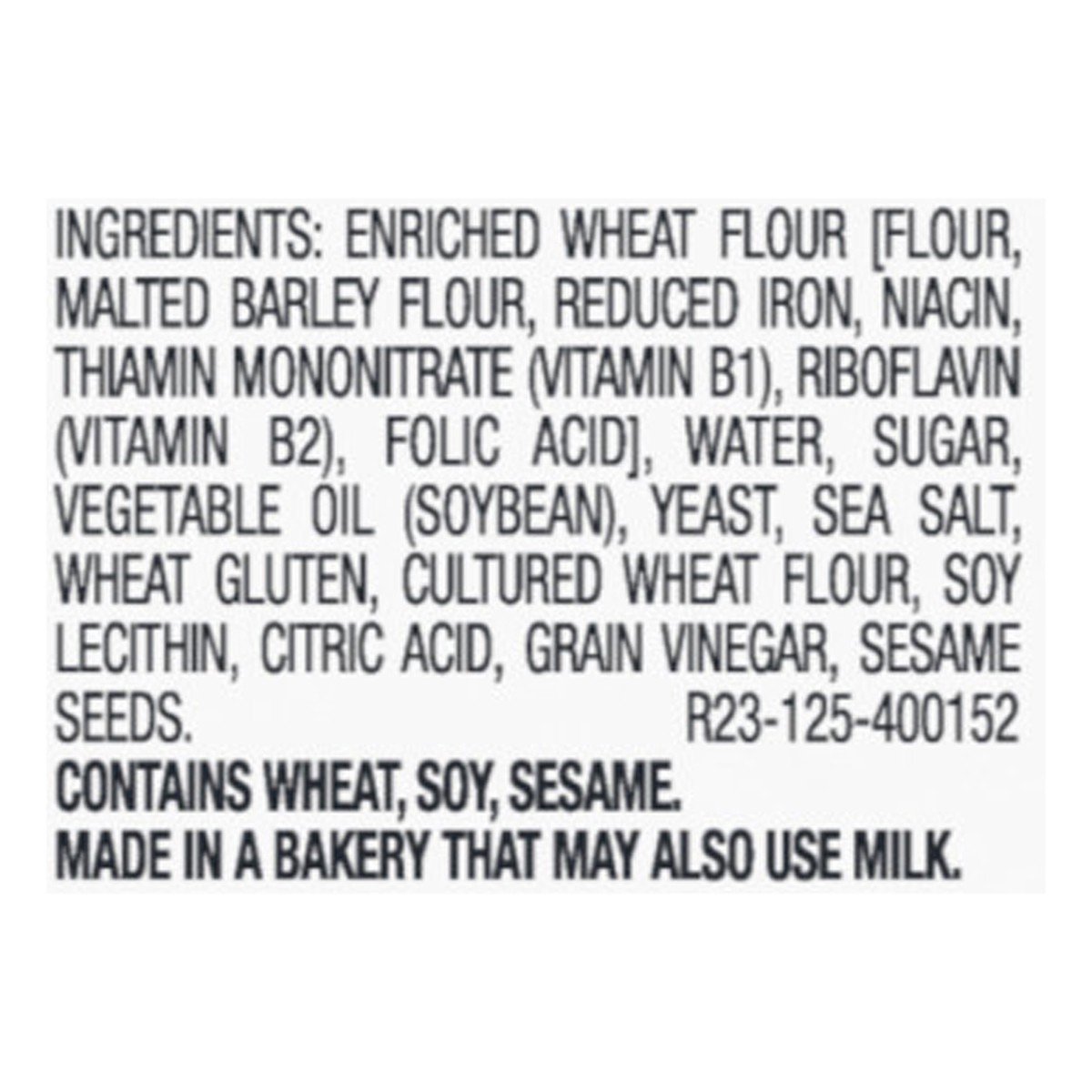 Enriched Wheat Flour [Flour, Malted Barley Flour, Reduced Iron, Niacin, Thiamin Mononitrate (Vitamin B1), Riboflavin (Vitamin B2), Folic Acid], Water, Sugar, Vegetable Oil (Soybean), Yeast, Sea Salt, …