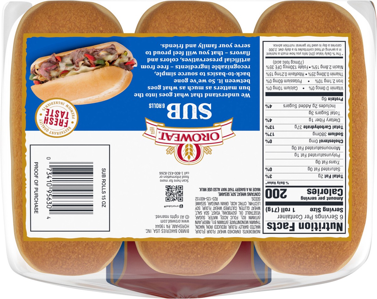 Oroweat Sub Rolls - 15 Oz