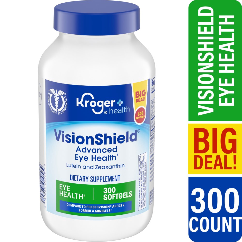 Kroger® VisionShield® Advanced Eye Health Softgels BIG DEAL! are a dietary supplement that supplies Lutein and Zeaxanthin. Featuring carotenoids lutein and zeaxanthin, it's a supplement that helps sup…