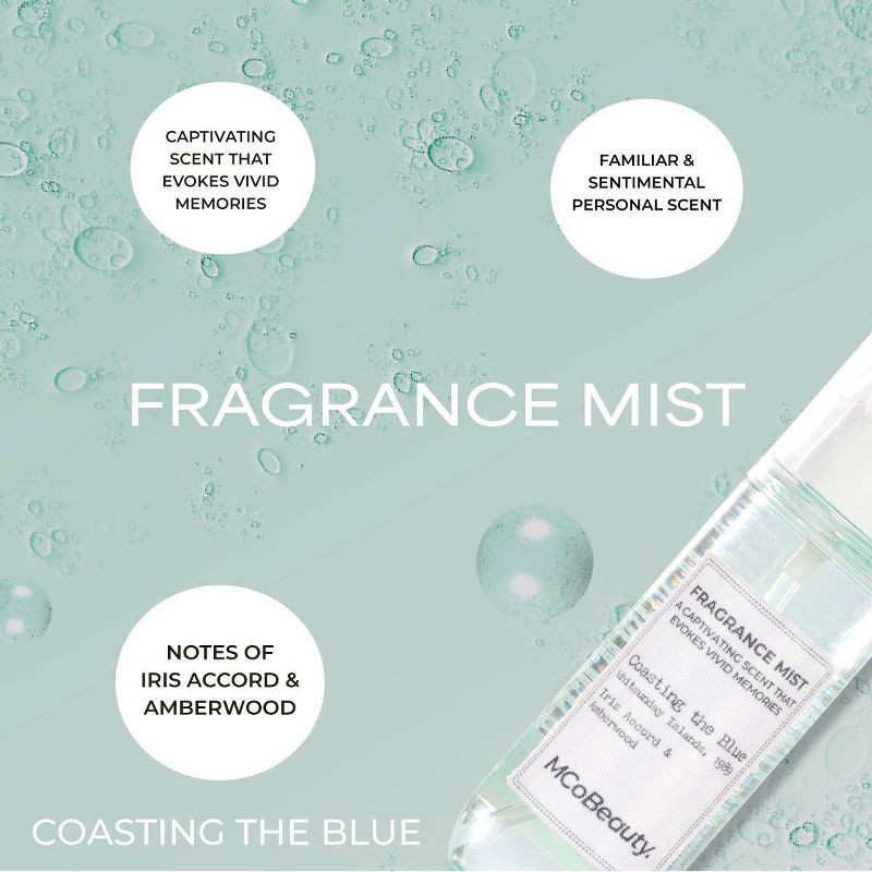 MCoBeauty FRAGRANCE MIST is a spray that captures the feeling of small simplicities and uplifting experiences to reflect on. COASTING THE BLUE embodies a lingering memory of cold sea water rushing aga…